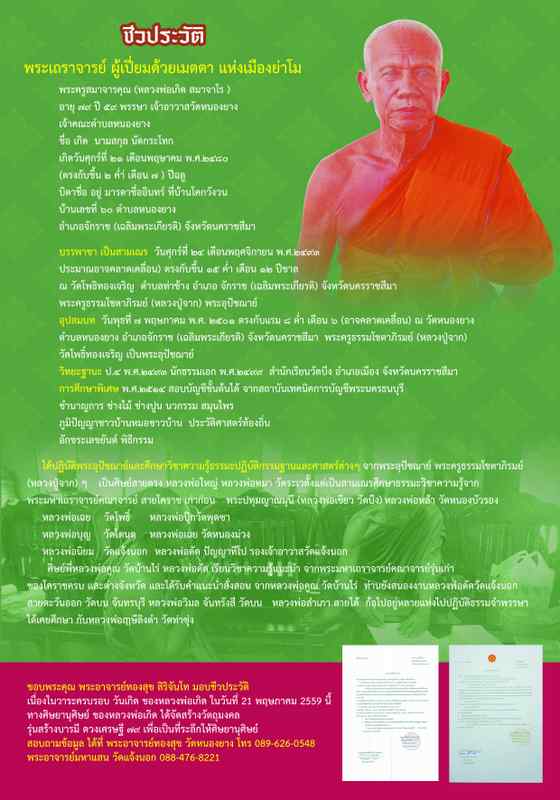 สอบถามข้อมูล ได้ที่ พระอาจารย์ทองสุข วัดหนองยาง โทร089-626-0548