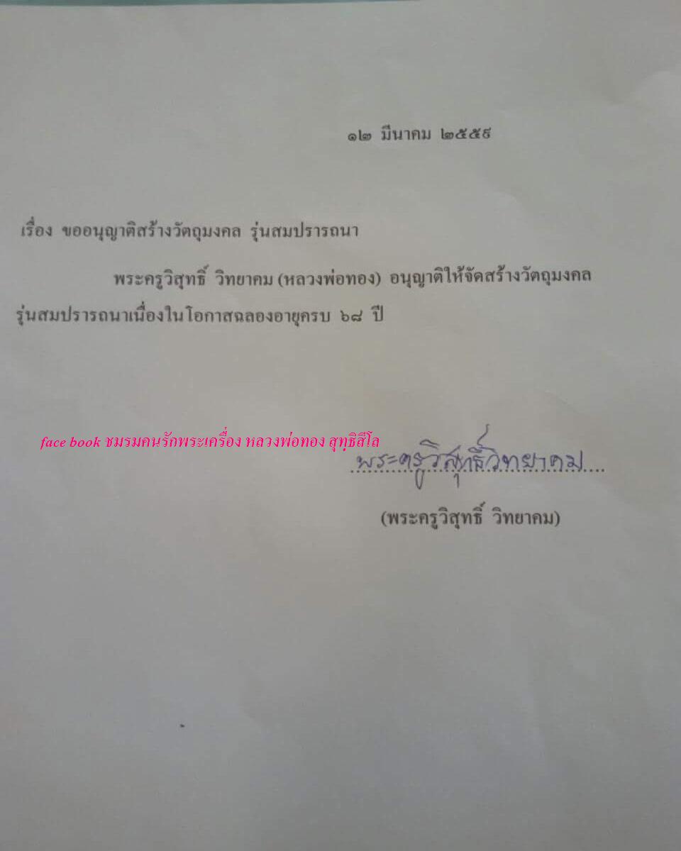 วัตถุประสงค์ในการจัดสร้างเหรียญรุ่นสมปราถนา เป็นรุ่นที่หลวงพ่อทอง ให้จัดสร้างเองนะครับ รายได้ที่เปิดจองทั้งหมดจะถูกนำเข้าบัญชีหลวงพ่อทอง เพื่อนำไปสมทบสร้างโรงพยาบาลที่หลวงหลวงตั้งใจทำบุญครั้งนี้ครับ