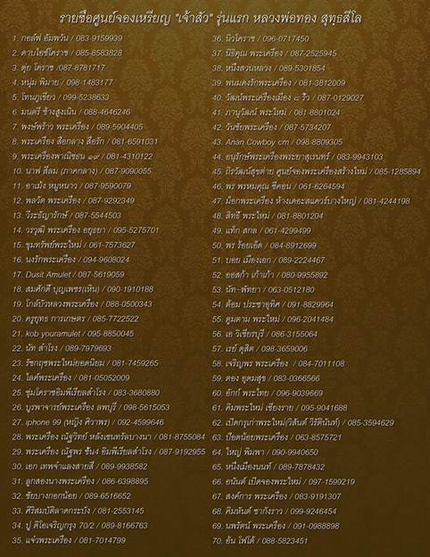 ประกาศรายชื่อศูนย์จอง เหรียญ เจ้าสัว รุ่นแรก หลวงพ่อทอง สุทฺธสีโล วัดพระพุทธบาทเขายายหอม