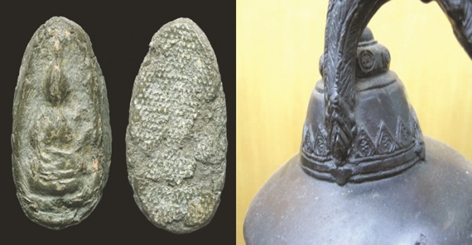แต่ก็คมชัดทุกองค์ แสดงเป็นพระเศียร พระเกศ ลำพระองค์ แสดงเป็นปางสมาธิ บนฐานหมอน