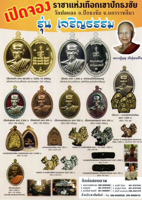 สนใจร่วมทำบุญ และสั่งจองวัตถุมงคลได้ที่