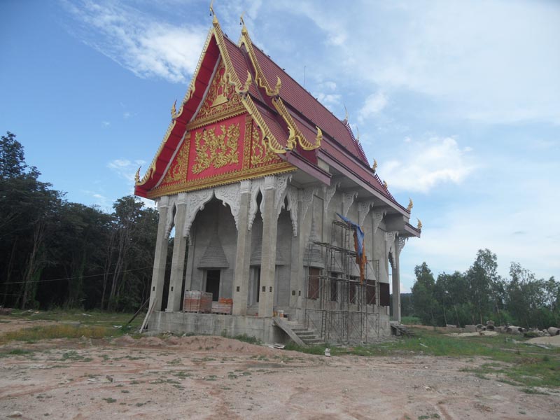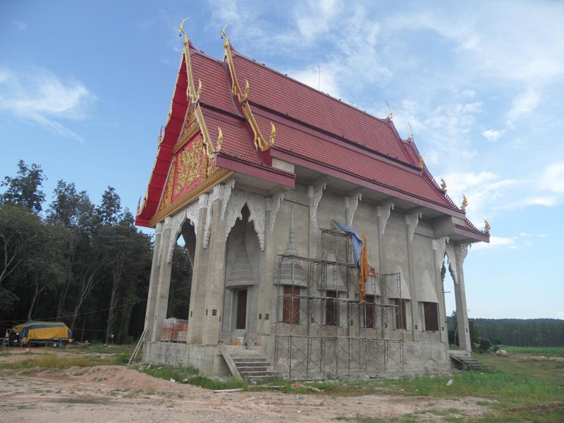 พระอุโบสถทรงสวยเด่นในป่าใหญ่ เริ่มก่อร่างสร้างฐานในขึ้นในปี2553 หลวงพ่อตั้งจิตแน่วแน่จะสร้างพระอุโบสถเพื่อให้สาธุชนชาวบ้านไว้เป็นที่ประกอบพิธีกรรมทางพุทธศาสนา ถึงแม้ทางวัดจะมีงบน้อยก็ตาม หลวงพ่อเล่าว่าในตอนที่เริ่มก่อสร้างนั้น หลวงพ่อมีเงินอยู่แค่สามหมื่นบาท แค่จ้างรถมาขุดสระเอาดินมาถมที่แล้วจ้างคนขุดหลุมฐานรากเงินก็หมดแล้ว ทำได้แค่นั้นหลวงพ่อก็หยุดเพราะเงินหมด หลวงพ่อบอกว่าเราต้องเริ่มต้น ถ้าไม่เริ่มทำก็ไม่มีวันแล้วเสร็จ ทำได้แค่ไหนก็แค่นั้น หมดงบก็หยุด มีงบก็ทำต่อ หลังจากนั้นก็มีผู้ใจบุญนำเงินมาทำบุญ เอาหินเอาปูนเอาทรายมาถวาย ท่านก็ดำเนินงานต่อ ทำมาเลื่อยๆ เมื่อมีงานทอดกฐินประจำปีก็จะได้เงินทำบุญเยอะหน่อยก็สร้างต่อ ทำมาแบบนี้เลื่อยมา หลวงปู่เล่าให้ฟังว่า ที่ป่าแห่งนี้มีสิ่งดีๆคอยช่วยเหลือ เวลางบประมาณหมด เดี๋ยวก็มีเทวดามาบอกให้โชคใช้ลาภกับลูกศิษย์ ได้โชคได้ลาภ กิจการเจริญรุ่งเรือง ลูกศิษย์เหล่านี้ก็จะกลับมาทำบุญ ถวายเงินร่วมสร้างพระอุโบสถ จนในปัจจุบันนี้ผ่านมาหกปี พระอุโบสถดำเนินการก่อสร้างไปได้เกิน 60% แล้ว และในปีนี้ขอเชิญชวนสาธุชนร่วมทำบุญทอดกฐินสามัคคีในวันที่ 30 ต.ค.59 เพื่อนำปัจจัยไปสร้างพระอุโบสถให้แล้วเสร็จ จะได้ไว้เป็นที่ประกอบพิธีกรรมทางพระพุทธศาสนาสืบต่อไปครับ |
