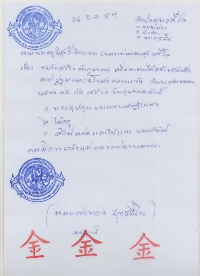 ทอง= มีความหมาย 2 อย่างคือ 1 หมายถึงองค์หลวงพ่อที่ท่านชื่อทอง ถือเป็นนิมิตรหมายอันดีมีมงคลนามที่บ่งบอกถึงความมีเมตตา และนำพาสิ่งดีๆมาให้กับศิษย์ ....2 คือ ทองหมายถึงทรัพย์สมบัติอันมีค่ามากมายมหาศาล เป็นสิ่งที่คนทั้งหลายปราถนาจะมี