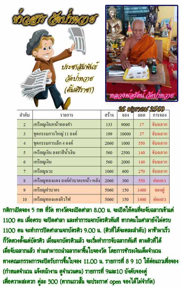 - ในส่วนของรายการที่ 9 และ 10 จะทำการให้จองเป็นคู่ ในราคาวัด 300 บาทเพื่อความสะดวกรวดเร็ว