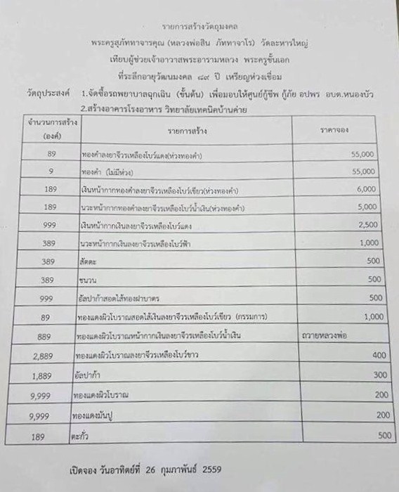 4.เปิดจองที่วัดละหารใหญ่ วันอาทิตย์ที่ 26 กุมภาพันธ์ 2560 (วันเดียว)