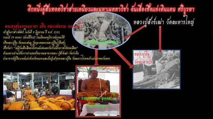 "ครั้งหนึ่งเมื่อ ปี 2514 หลวงพ่อรวยยังเคยร่วมนั่งอธิฐานจิตตปลุกวัตถุมงคลพร้อมกับหลวงปู่ทิม และเกจิดังๆยุคนั้นด้วย " |