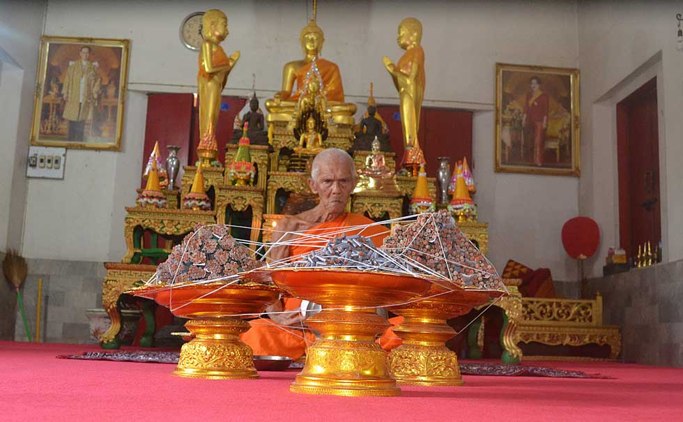 วันที่ 30 พฤษภาคม 2560 ครูแรง ฝนตกมา 5 รอบ ได้ฤกษ์ 5 โมงเย็น หลวงปู่สั่งให้เอาตะกรุดที่ทำเสร็จ เอาเข้าโบสถ์ให้หมด หลวงปู่จะเสกฤกษ์ครู หลวงปู่ลอง วัดวิเวกวายุพัด เสกตะกรุดชุดนี้เกิดอะไรขึ้น ? ต่อหน้าคนนับสิบ เกิดปาฏิหาริย์ อัศจรรย์ !!! ที่ทำให้สะเทือนเลื่อนลั่น คือ เกิดพระอาทิตย์ทรงกลด ดวงใหญ่ ครอบคลุมอยู่เหนือโบสถ์ ทุกคนเห็นหมด ยังมีพระชรา ไม่รู้มาจากไหน เดินมาหยุดหน้าโบสถ์ชักยันต์กลางอากาศครอบโบสถ์แล้วเดินหายไป พอได้เวลา หลวงปู่ลอง เดินเข้าโบสถ์นั่งสมาธิเสกเงียบๆ ผ่านไป 1 ชั่วโมง ทุกอย่างเงียบสนิท อยู่ๆ ฟ้าร้องจนโบสถ์สั่น ลมพัดแรง ประตูโบสถ์สะเทือน พระสงฆ์และคนในวัดต่างก็ตกอกตกใจ แต่ หลวงปู่ลอง กับนั่งสงบนิ่ง สมาธิจิตแน่วแน่เสกตะกรุดเมียมากเหมือนไม่มีอะไรเกิดขึ้น หลังจาก หลายชั่วโมงผ่านไป เสร็จพิธีปลุกเสกนำฤกษ์ หลวงปู่ลอง ถอนจากสมาธิก่อนทำน้ำมนต์จินดามณี เสกผงนะจังงังเจิมตะกรุดเมียมาก ประพรหมน้ำพระพุทธมนต์ เสร็จแล้ว หลวงปู่ลอง ก็หันมายิ้มให้ ตะกรุดเมียมาก รุ่น ๕ เทพรัญจวน รุ่นนี้ไม่ธรรมดา ขนาดเสกนำฤกษ์ พระอริยเจ้า พรหม เทวดา ครูบาอาจารย์ มากันมากมาย มาร่วมทำพิธีให้ มามากถึงขนาดว่า ลมแรง ฟ้าร้อง โบสถ์ลั่น ของจริง มีจริง แน่จริง ใครจองรุ่นนี้ โปรดรู้ไว้ซะด้วยว่า ไม่ธรรมดา แน่นอน ขนาดนำฤกษ์ยังแรงขนาดนี้ แล้ววันพุทธาภิเษกใหญ่จะแรงขนาดไหน ใครอยากได้ตะกรุดขลัง ขลัง ใช้แล้วยิ้มออก ห้ามพลาด!!