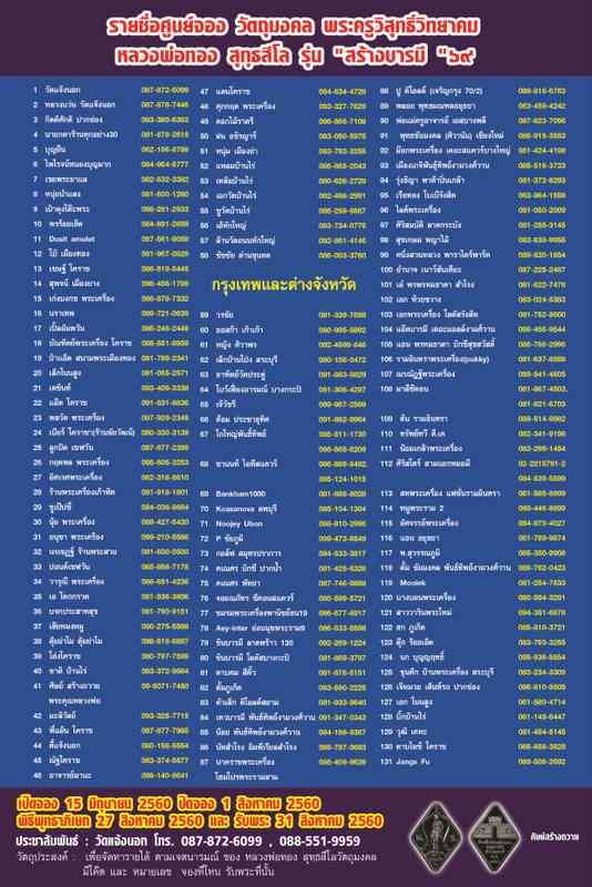 สอบถามข้อมูลได้ที่ ประชาสัมพันธิ์ วัดแจ้งนอก โทร 087-872-6099 โทร 088-551-9959 ครับ. |