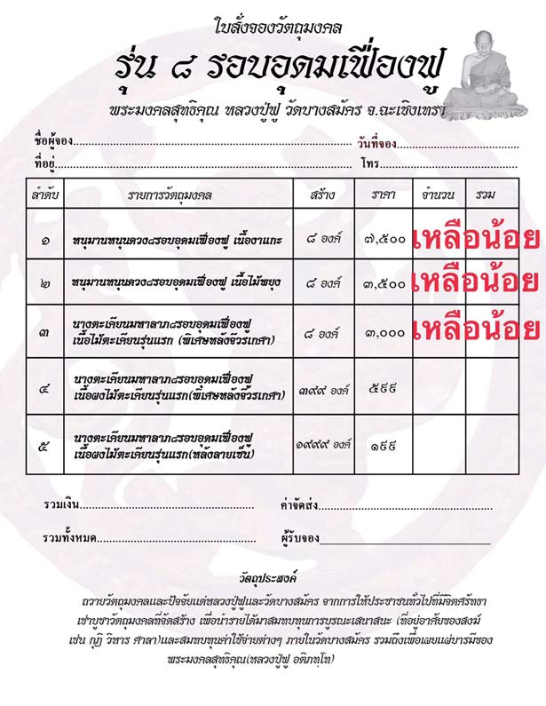 [๑. - ๓. สร้างอย่างละ ๘ องค์เท่านั้น รันเลข ๑ -๘ / โค้ต ฟู ๘ มาจากหลวงปู่ฟู ๘ รอบ]