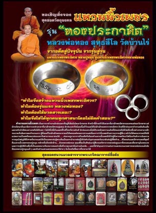 หล่อตัวอย่างเนื้อทองแดง ใส่มวลสารที่ประเมินค่าไม่ได้ทุกวง (ยังไม่ขัด แค่ล้างทำความสะอาดมาก่อน แหวนปลอกมีดต้องขัดทุกวง และหล่อได้แค่เนื้อเดียวก่อน เพราะค่ำ) รับรองสุดยอดด้วยมวลสาร ว่าจัดจ้านที่สุดของที่สุดจริงๆกับแหวนนิ้วเพชรพระอิศวร รุ่นแรก อย่างเป็นทางการ หลวงพ่อทอง สุทฺธสีโล เป็นทั้งเครื่องรางมงคลทรงคุณค่า และเครื่องประดับที่มีเสน่ห์น่ามอง ท่านยังสามารถจองร่วมบุญทัน ติดต่อสอบถามได้ทุกๆศูนย์จองคุณภาพ |