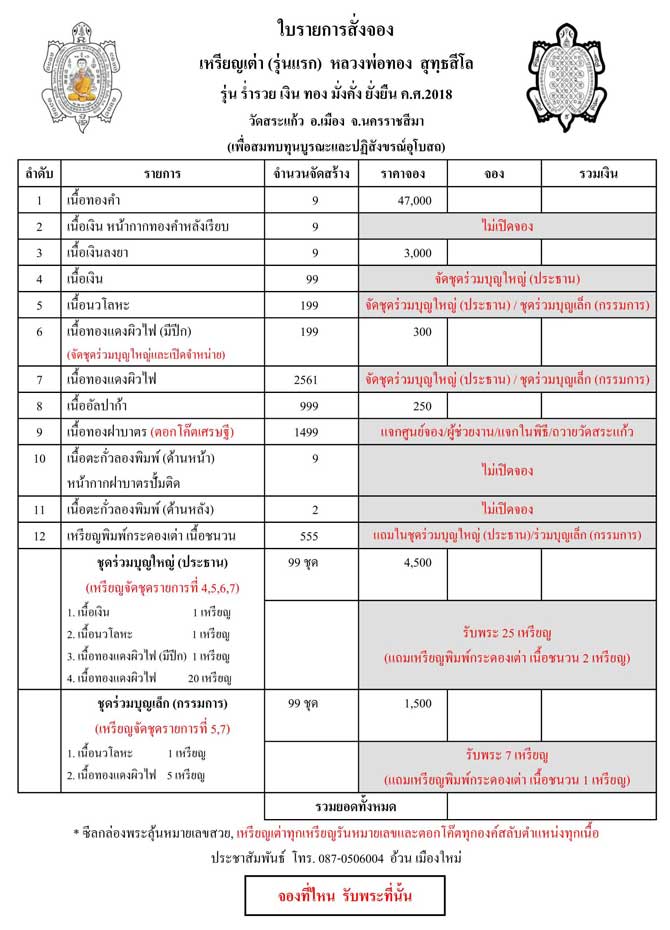 ทางผู้สร้าง คุณ ไชยวัฒน์ กิ่งรุ้งเพชร จะทำเหรียญให้เสร็จก่อน ได้ถวายเงินให้หลวงพ่อทองเลยครับ และเปิดเหรียญจริง และ ศูนย์จอง 36 ศูนย์ ภายในเดือน กุมภาพันธ์ และจองรอไม่นาน รับเหรียญได้เลยจากศูนย์จอง จะซีลกล่องทุกกล่องครับ ลุ้นหมายเลขสวย