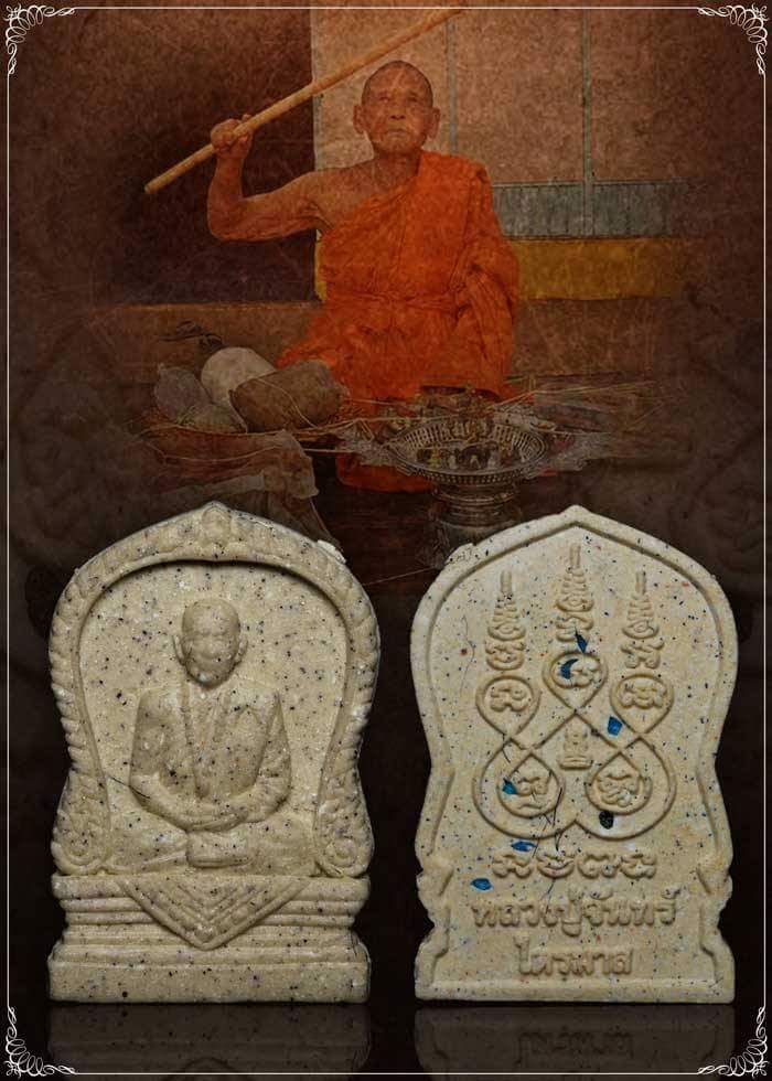 พระผงรูปเหมือนเสมาเงินล้านไตรมาส เอาไว้ที่บ้านเงินทองเข้าบ้าน หรือห้อยคอติดตัว ค้าขายดีมีกำไร นำโชคลาภการเงินไม่ขาดกระเป๋า จะไม่ตกต่ำ ไม่ไหลลงล่าง จะยืนเด่นเป็นสง่าเหนือปัญหาอุปสรรค์ เหนือ เคราะห์กรรม ทุกข์ภัย ทั้งปวง ดังคำโบราณที่ว่า ไม่ต่ำกว่าเขา ไม่จนกว่าใคร เรียกเงิน เรียกลาภ รับทรัพย์อย่างเดียว ช่วยยกฐานะ ยกชีวิต ยกหน้าที่การงาน ให้รุ่งเรืองดีขึ้น การงาน การเงิน คล่องตัว หลั่งไหลมาอเนกอนันต์ทั่วทั้งจักรวาล หลวงปู่จันทร์ ลบผง พุทธคุณ มหาราช ปถมัง ตรีนิสิงเห อิทธิเจ ลบผงตีธาตุทั้ง ๕ ธาตุตั้งธาตุ ดิน น้ำ ลม ไฟ หลวงปู่ร่ำเรียนการลบผงจากอาจารย์วุ้น(พี่ชาย)เป็นผงวิเศษที่ได้จากการเขียนสูตร ลบสูตร อักขระเลขยันต์ต่างๆตามตำรา โดยใช้ดินสอที่ปั้นขึ้นจากดินสอพองเขียนลงบนกระดานชนวน หรือกระดานไม้แล้วลบออก จึงได้ผงวิเศษนั้นมาเป็นมวลสาร การลบผงทั้งห้านั้น จะครอบคลุมตั้งแต่เริ่มตั้งตัวนะ จนถึงนิพพานสูตรเลยทีเดียว อันเป็นรากเหง้าในการต่อวิชาในระดับสูงต่างๆต่อไป ไม่ว่าจะเป็นพระผงใดแม้นผสมด้วยผง๕ประการ ที่ผ่านการลบสูตรที่ถูกต้องนั้น แม้นมิต้องปลุกเสกก็มีความเข้มขลัง ดั่งเช่น สมเด็จวัดระฆังฯ ของสมเด็จโต พระเครื่องหลวงปู่สี หลวงปู่ดู่ วัดสะแก หลวงพ่อทบ วัดชนแดน หลวงปู่สุข วัดปากคลองฯ และคณาจารย์อีกมากมาย ก็ล้วนใช้ผง๕ประการเป็นต้น สร้างขึ้นตามฤกษ์มหามงคล นำมวลสารผ่านการปลุกเสกมากมาย เช่น มวลสารเก่าแก่ ผงปถมัง= เมตตาร้ายเหลือ ผงอิทธิเจ=มหานิยมเกินตัว ผงพุทธคุณ=ครอบจักรวาล ผงมหาราช บารมีมหาอำนาจ เสริมดวง ผงตรีนิสิงเห=กันภัยสารพัด ผงบางขุนพรหม ปี 2509 ผงตะไบพระกริ่ง บัญชรหลวงปู่ทิม ดอกรักซ้อน 108 ดอกมาบดผสมว่านดอกทอง มวลสารมหามงคล 7 ชนิด ผงว่านยาจินดามณี ข้าวก้นบาตร ผงดวงเศรษฐีชนะมาร ว่านเสน่ห์จันทร์แดง ผงมหานิยม แร่พวงเงินพวงทอง ว่านเงินไหลมา เถาวัลย์หลงดง ว่านสาลิกาลิ้นทอง ผงปัฐหมังโลกีย์ ชานหมากหลวงปู่จันทร์ และ ผงธูป108 วัด ผงธูป108 วัด เช่น ผงธูปวัดท่าซุง ผงธูปวัดน้ำพุ ผงธูปวัดภูเขาทอง ผงธูปวัดระฆังฯ ผงธูปบูชาหลวงพ่อทบ วัดชนแดน ผงธูป พระพุทธมหาธรรมราชา ผงธูปวัดปากคลองมะขามเฒ่า ผงธูปวัดปากน้ำภาษีเจริญและผงธุปอีกมากมายหลายวัด และเกศาหลวงปู่จันทร์ พลอยเสกหลวงปู่จันทร์ ขณะเสกได้มีพลอยบางส่วนกระโดดออกมาจากพานที่เสกพลอยต่อหน้าลูกศิษย์หลายคน ได้แก่ สีแดง Pink Ruby Star สีขาว White Topaz สีฟ้า Blue Sky พลอยเสกนี้เป็นพลอยเสกที่มีพุทธคุณในตัวเด่นด้านเมตตามหานิยมและโชคลาภ หลวงปู่ปลุกเสกไว้ในถ้ำนาคราชตลอดการบำเ