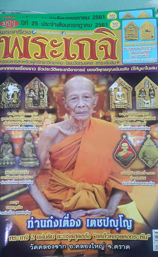 ท่านก๋งเตื่อง เตชปญฺโญ ขึ้นปกหนังสือ พระเกจิ ฉบับวันที่ ๑๐ ก.ค.๖๑ พร้อมพระขุนแผนผงพรายกุมารพิมพ์เล็ก ด้านในมีชีวประวัติของท่านก๋งเตื่อง และวัตถุมงคลรุ่นต่างๆ อยู่ด้านใน เชิญศิษย์สายก๋งเตื่องหาเก็บกันไว้นะครับ นานจะได้เห็นท่านก๋งบนหน้าปก สวยงามจริงๆ ครับ  |