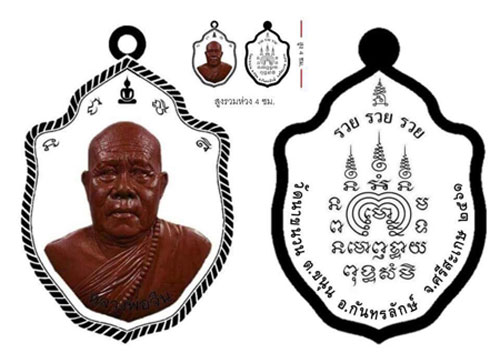 ท่านจะอวยพรลูกศิษย์ว่า ดี ดี ดี รวย รวย รวย จึงได้นำคำอวยพรของท่าน มาบรรจุไว้ด้านหลังเหรียญ
