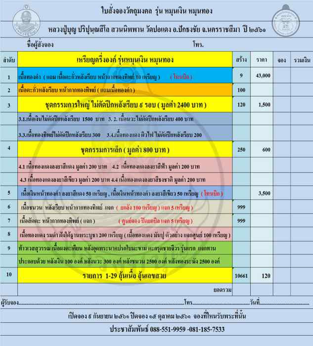 ปิดจอง 15 ตุลาคม 61 วันปลุกเสก และ รับพระ จะแจ้ง