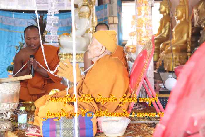 หลวงปู่แสน ปสนฺโน อธิฐานจิต ปลุกเสก พระบูชา รุ่นอายุุยืน 111 ปี ณ.วัดบ้านหนองจิก 3 มกราคม 62