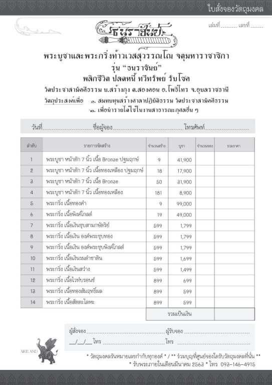 ขอเชิญร่วมสั่งจอง ท้าวเวสสุวรรณโณ รุ่น ธนราชันย์
