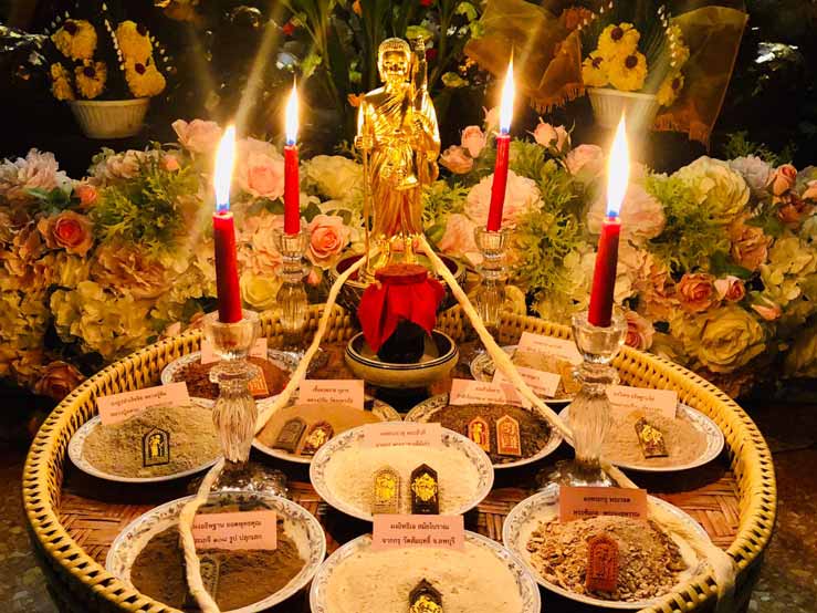 แลที่กล่าวมานี้คือ รูปเหมือนยอดพระอริยะสงฆ์ศักดิ์สิทธิ์ ๔ จตุมหาเถราจารย์ ซึ่งประดิษฐานแผ่บารมีสู่ มวลสารมงคล ในการกระทำพิธีสำคัญณ ปรัมพิธีศักดิ์สิทธิ์นี้
