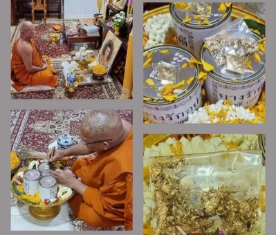 และมอบมวลสาร เพื่อใช้ในการจัดสร้างเหรียญ ๖ รอบ (หน้าหนุ่ม) หลวงพ่อทอง วัดบ้านไร่