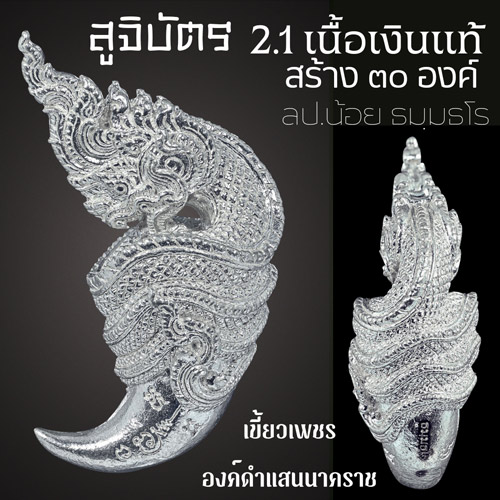 ✨หลวงปู่น้อย ธมฺมธโร พระสุปฏิปันโน ผู้ถือ รุกขมูลอยู่ในป่าฝั่งทะเลอันดามัน เกือบทั้งชีวิต เมื่อจิตถึงญาณขั้นสูง องค์ดำแสนพญานาค จะเสด็จมาเสริมบารมี คุ้มครอง อุดหนุนช่วยเหลือ บางครั้ง องค์เทพพญานาคดำแสนยังเสด็จมาขอฟังธรรม ผู้มีบุญเท่านั้นจะเป็นผู้ครอบครอง ใครได้พกพาเขี้ยวองค์ดำแสนศิริจันทรานี้จะทำให้ ยกจิตยกใจยกตนให้มั่งมีทรัพย์ จับอะไรเป็นเงินเป็นทอง มั่งมีเงินทอง มั่งมีทรัพย์ ร่ำรวย ยิ่งพวกทำมาค้าขาย เสี่ยงโชค แสวงลาภ จะมีแต่เพิ่มมากมายมหาศาล เงินเข้าทรัพย์เข้ามากไม่รู้เนื้อรู้ตัว "เขี้ยวเพชรพญานาคองค์ดำแสนศิริจันทรานาคราช ของนี้เกิดจาก นิมิตและบารมีของหลวงปู่น้อยโดยแท้ ผู้มีบารมีเท่านั้นถึงจะได้ไป เพราะนี่ไม่ใช้ของเครื่องรางของขลังแบบธรรมดา แต่เป็นเครื่องรางของขลังที่ประธานมาจากองค์ดำแสนนาคราช ผู้เป็นใหญ่แห่งนาคพิภพ ดินแดนอันดามันแห่งท้องทะเล เรียกเงินทอง เรียกความมั่งมีเป็นมหาเศรษฐีได้ตามใจหมาย ใครได้จับได้ใช้ได้อธิฐาน จะทำให้ ร่ำรวย โชคดี มีทรัพย์มีความสำเร็จ ตลอดเวลา รวยได้ดังปาฏิหาริย์สมบัติทุกอย่างสมปรารถนา ความอุดมสมบูรณ์ ความร่มเย็นน้ำท่าบริบูรณ์พูนสุข นาคเจ้าแห่งน้ำบูชาแล้วร่มเย็นเป็นสุขกัน ทุกทุกคน จองลุ้นเนื้อ ลุ้นละ 300 บาท