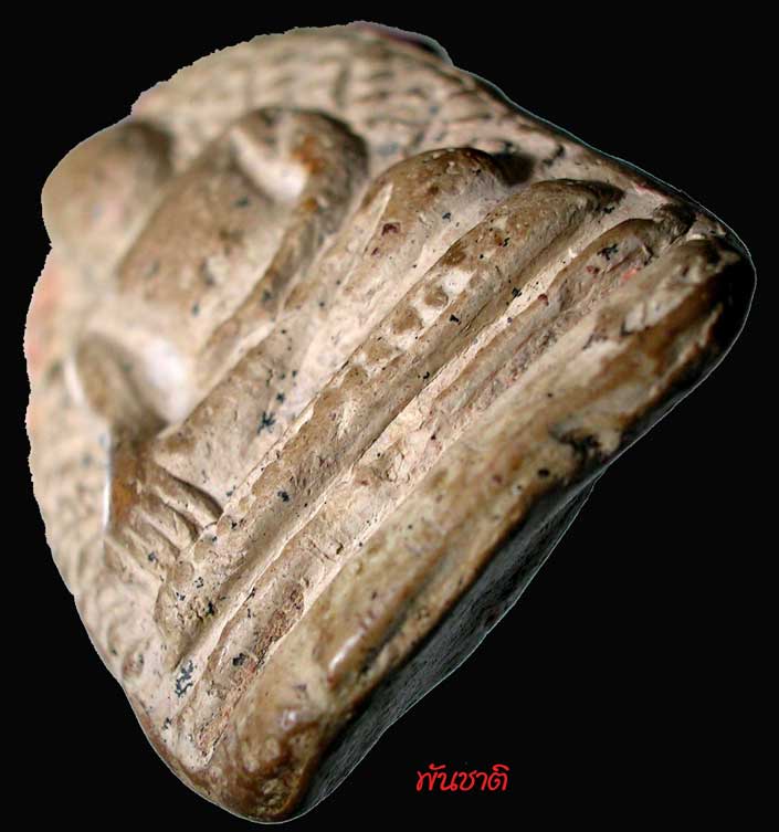 แม่พิมพ์เป็นแบบแม่พิมพ์ด้านหน้าด้านเดียว ด้านหลังไม่มีพิมพ์ครับ จะเห็นว่าบางองค์ก็อูมบางองค์ก็แบน แล่วแต่อารมย์ของช่างกดพิมพ์ สำหรับการพระออกจากพิมพ์นั้นนึกไม่ออกว่าแกะออกมาได้อย่างไร เพราะไม่เห็นไว้เสียบพระออกจากพิมพ์ครับ คิดเอาเองว่า น่าจะเป็นพิมพ์หุ้นเทียใช้กดครั้งเดียวแล้วก็ทุบแม่พิมพ์หุ้นออกจึงแกะพระออกมาได้..ข้อนี้ผมคิดเอาเองนะครับ