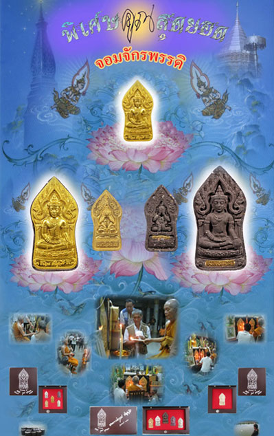 ที่สุดแห่งมวลสาร ที่สุดแห่งเจตนาการสร้าง เพื่อเป็นพุทธบูชาพระคุณ หลวงพ่อคูณ ปริสุทโธ โดยลูกศิษย์ชุดแรก คุณเชิดศักดิ์ ภูมิสวัสดิ์- และคุสัมฤทธิ์ สรรสวาทดิ์ โดยหลวงพ่อคูณ ปริสุทโธ อธิษฐานจิตปลุกเสกเดี่ยว วันอังคารที่ ๒๑ กันยายน พ.ศ. ๒๕๕๓ ณ วัดบ้านไร่ อ. ด่านขุนทด จ. นครราชสีมา วัตถุประสงค์ รายได้ส่วนหนึ่งนำไปบูรณะพระอุโบสถ วัดโคกกลาง ต.หนองบัว อ.ประคำ จ.บุรีรัมย์ ส่วนหนึ่งนำไปถวายให้กับหลวงพ่อคูณ ปริสุทโธ วัดบ้านไร่ และได้มอบพระส่วนหนึ่งไปถวายให้กับ อาจารย์ทอง เพื่อแจกจ่ายให้กับลูกศิษย์ ทั่วไปที่มาทำบุญและท่านก็แจกจ่ายไปจนหมดในพริบตา พระชุดนี้ ขออนุญาตสร้างกับหลวงพ่อคูณโดยตรง หลวงพ่อคูณยังบอกกับคณะผู้จัดสร้างว่า "มึงอย่าทำเป็นรูปหน้ากูมาเด่อ" คณะผู้จัดสร้างยังถามว่าทำไมละหลวงพ่อ หลวงพ่อคูณ ท่านตอบว่า "หน้ากูมันหลายแล้ว "จึงเกิดเป็นวัตถุมงคล ชุด พิเศษ คูณ สุดยอด จอมจักรพรรดิ์ ขึ้น เมื่อหลวงพ่อเห็นท่านยังบอกว่า "เออสวยดี" โดยมีรายการวัตถุมงคลจัดสร้าง ดังนี้ |