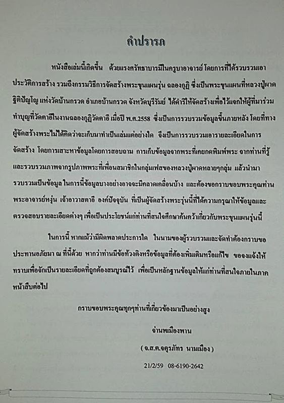 ขุนแผนฉลองกุฎิวัดตาอี หลวงปู่ผาด วัดบ้านกรวด บุรีรัมย์ พระดีที่มีประสบการณ์ต่อเนื่อง จากการบอกต่อๆกันมา ยิ่งนานวันยิ่งแรงๆด้วยประสบการณ์กับจำนวนการสร้างที่แน่นอน จำนวน 2,000 องค์และส่วนหนึ่งได้เดินทางไปสู้ต่างแดน ของดีที่หลายๆคนเหลียวมอง..ราคาจับต้องได้ครับ ลองชมตามกลุ่มเฟสนี้ได้ครับ..เลยรายละเอียดซึ่งได้มีคนรวบรวมออกมาเป็นรูปเล่ม โดยผ่านการคัดกรองจากพระอาจารย์ผู้ที่สร้างเรียบร้อยแล้วครับ |