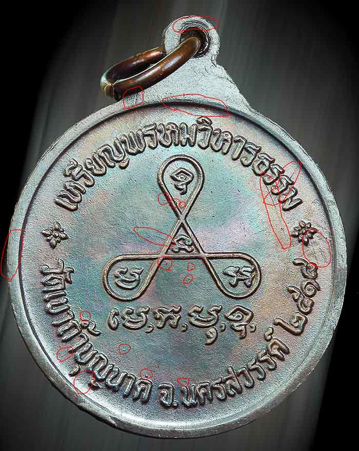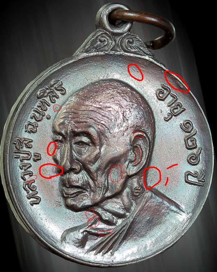 เนื่องจากตำหนิเหล่านี้ปกติผมทำไว้ดูเองคนเดียว แต่คิดว่านำมาเผยแพร่ลงในกระทู้นี้น่าจะได้ประโยชน์กับเพื่อนๆท่านอื่นด้วยครับ เนื่องจากการลงภาพในกระทู้อาจจะละเอียดไม่ค่อยชัดเจนเนื่องจากต้องลดขนาดไฟล์ภาพที่บังครับไว้ไม่เกิน 80 KB ในจุดที่วงถ้ามีพระอยู่ในมือจะสังเกตตำหนิได้ครับ เอาไว้เป็นวัคซีนป้องกันพระเก๊ครับผม - ขอบคุณที่เข้ารับชมจะเป็นพระคุณอย่างสูงหากท่านคอมเมนท์ติชม ทักทายกันบ้างเพื่อเป็นกำลังใจกันครับ