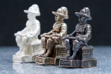 ๒. เจ้าตากลอยองค์แบบยืนบัญชาการทัพ เนื้อนวะโลหะหล่อโบราณ บูชาองค์ละ ๗๐๐ บาท, เนื้อทองแดงรมดำบูชาองค์ละ ๓๐๐ บาท, เนื้อเงินหมดแล้ว (ทุกองค์ตอกโค๊ตอุดผง)