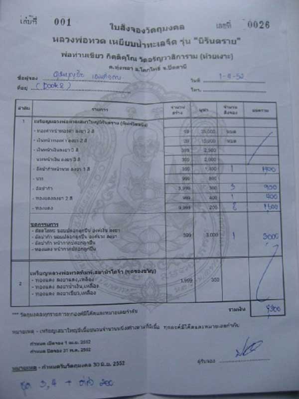 หมายเหตุ จองตรงกับผู้สร้างคุณหมู และเหรียญแถมจากผู้สร้าง(ถ้าจำไม่ผิด เป็นเหรียญเสมาจิ้ว)
