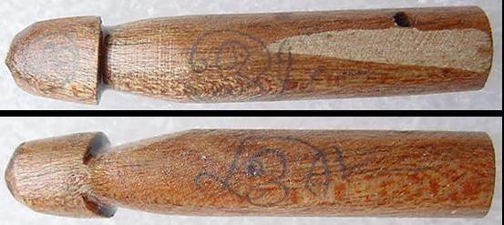 2. ปลัดตัวเล็กแกะจากไม้มะยมตายพราย จารดินสอ ส่วนหัวได้เจาะใส่ผงอิทธิเจผสมชันโรงไว้(กันคนคัดคนถอน)...เปิดราคาที่ 450 บาท...
