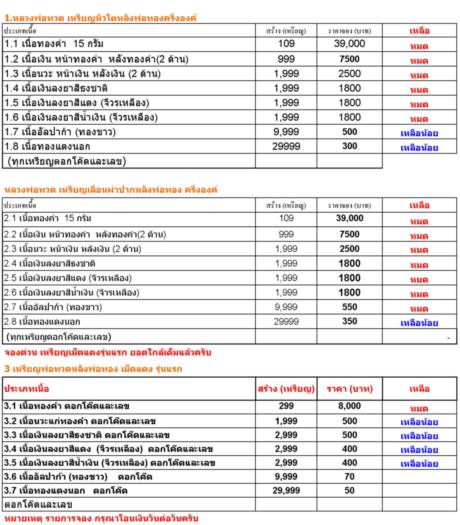ตารางแสดง รายการเหรียญที่ยังมีและใกล้หมด |