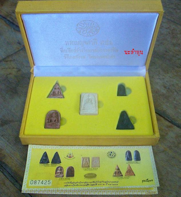 พระชุดเบญจภาคี ภ. ป.ร. เฉลิมพระเกียรติ ฉลองสิริราชสมบัติครบ 60 ปี จัดสร้างขึ้นด้วยมวลสารศักดิ์สิทธิ์จากวัดต้นกำเนิด ทั้ง 5 วัด และผงอิทธิเจ ปัตทะมัง จากเจ้าประคุณสมเด็จ และผงพระจากเกจิคณาจารย์รุ่นเก่า พระแต่ละองค์ถอดแบบมาจากพระเบญจภาคีองค์แชมป์ของกำนันชูชาติ โดยมิได้มีการตกแต่งแบบพิมพ์ใดๆ พิธีมหาพุทธาภิเษก ในวันที่ 29 พ.ย.2549 เวลา 17.00 น. ณ วัดพระศรีรัตนศาสดาราม กทม. ซึ่งมีพระราชาคณะและเกจิอาจารย์จากทั่วประเทศ 79 รูป นั่งปรกปลุกเสก รายนามพระเกจิคณาจารย์ (ยกมาเพียงบางส่วน) สมเด็จพระพุฒาจารย์ วัดสระเกศ กทม., สมเด็จมหารัชมังคลาจารย์ วัดปากน้ำ กทม., หลวงปู่ทิม วัดพระขาว อยุธยา, หลวงพ่อรวย วัดตะโก อยุธยา, หลวงพ่อเพิ่ม วัดป้อมแก้ว อยุธยา, หลวงพ่อพูล วัดบ้านแพน อยุธยา, หลวงพ่อเจือ วัดกลางบางแก้ว นครปฐม, หลวงพ่ออุ้น วัดตาลกง เพชรบุรี,หลวงพ่อสวัสดิ์ วัดศาลาปูน อยุธยา, หลวงพ่อเอียด วัดไผ่ล้อม อยุธยา, หลวงพ่อประสิทธิ์ วัดไทรน้อย นนทบุรี, หลวงพ่อทองกลึง วัดเจดีย์หอย ปทุมธานี, หลวงพ่อสมศักดิ์ วัดโสธร ฉะเชิงเทรา, หลวงพ่อพรหม วัดบ้านสวน พัทลุง, หลวงพ่อเที่ยง วัดพระบาทเขากระโดง บุรีรัมย์, หลวงพ่อแย้ม วัดสามง่าม นครปฐม พระทั้ง 5 องค์ อัญเชิญตรา ภ. ป.ร. ประดิษฐานที่ด้านหลัง และยิงโค้ดเลข ๙ และดวงตราสัญลักษณ์ด้วยเลเซอร์ที่ด้านหลัง โดยเฉพาะพระสมเด็จในแต่ละชุด จะมียิงเลขประจำชุดไว้ ซึ่งตัวเลขจะตรงกับบัตรประจำกล่อง พระบรรจุในกล่องบุผ้าไหมสีเหลืองสวยงาม เหมาะให้เป็นของขวัญแก่ผู้หลักผู้ใหญ่และผู้ที่นับถือกัน ชุดนี้ 3,500 บาทครับ สนใจโทร 082-3882270 ฟรีค่าจัดส่ง Ems ทั่วประเทศ |