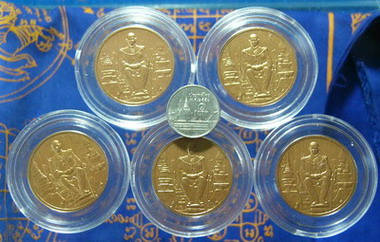หัวข้อกระทู้ : เหรียญที่ระลึกพระราชพิธีมหามงคลเฉลิมพระชนมพรรษา 80 พรรษา ชนิดทองแดงพ่นทรายดำ ขนาด 3 ซม. 5 เหรียญ
