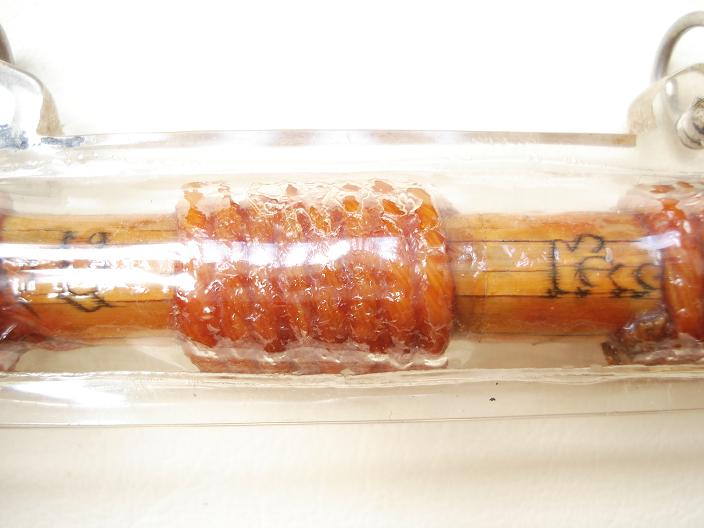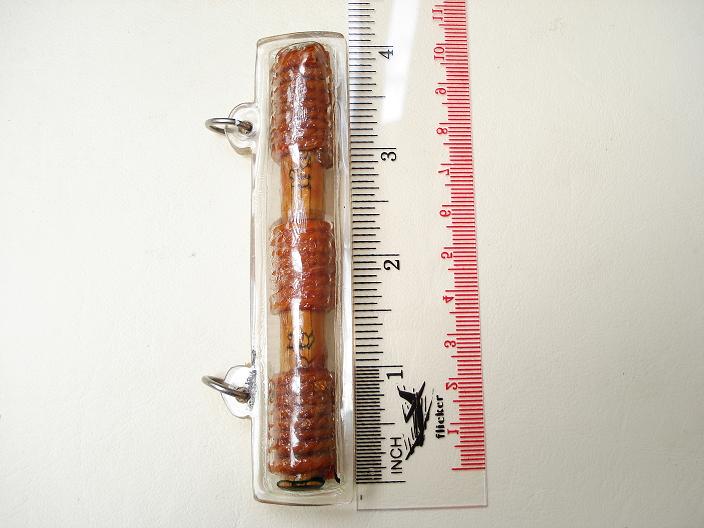 ตะกรุดโทนใบลาน 100 ปี ของ หลวงพ่อมี วัดมารวิชัย สร้าง พ.ศ.2540 ความยาวประมาณ 4 นิ้ว ทำจากใบลานเก่าอายุเป็น 100 ปี ลงจารด้วยมือ หุ้มทับบนตะกรุดทองแดง ถักเชือกแล้วปิดทองลงรักน้ำเกลี้ยงทับอีกชั้น สภาพสวยมากไม่ผ่านการใช้กรุดเนื้อทองแดงหุ้มด้วยใบลานลงอักขระยันต์ด้วยลายมือของหลวงพ่อเอง ยาวประมาณ 4 นิ้ว ถักเชือก 3 ปล้อง |
