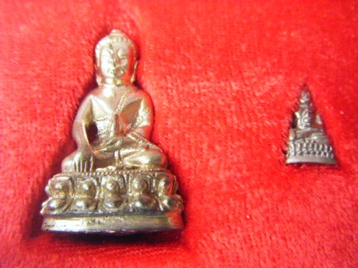 พระกริ่งปฐวีธาตุอุดมความสุข ลป.คำพันธ์ วัดธาตุมหาชัย นครพนม พศ.2540 เนื้อนวโลหะกลับดำ จัดสร้างโดยคณะศิษย์เชียงใหม่นำโดยนายแพทย์พิษณุ รักสกุลกานต์และคุณธงชัย อุดมความสุข เพื่อหารายได้ให้โรงพยาบาลสันป่าตอง เชียงใหม่ ใต้ฐานใช้เม็ดกริ่งมาจากปฐวีธาตุซึ่งลป.คำพันธ์ท่านเป็นเกจิอาจารย์ที่สามารถอธิฐานจิตปลุกเสกปฐวีธาตุได้ สำหรับเนื้อโลหะได้ใช้ชนวนพระกริ่งรุ่นเก่าเช่นพระกริ่งชินบัญชรของลป.ทิมและแผ่นยันต์ต่างๆของพระเกจิอาจารย์สายวัดป่ารวมทั้งแผ่นยันต์ของอจ.ฝั้น อาจาโรและลป.สิม พุทธาจาโร อีกทั้งยังมีทองคำ(ประมาณ 31 บาท)และเงินเป็นส่วนผสม(ประมาณ 16 กิโลกรัม) ใต้ฐานพระกริ่งตอกโค๊ต 2 ตัว และหมายเลขประจำองค์พระกริ่ง สำหรับประวัติของ คุณธงชัย อุดมความสุข ได้เคยสร้างพระถวายให้ลป.ทิม วัดละหารไร่(พระปิดตาเนื้อผงคลุกรัก) และ ลป.สิม วัดถ้ำผาปล่อง(รุ่นเมตตา) ก็ได้รับความนิยมเป็นอย่างมาก สำหรับพระกริ่งปฐวีธาตุอุดมความสุข ที่สร้างเพื่อหารายได้ให้โรงพยาบาลสันป่าตองและลป.คำพันธ์ ได้เมตตาปลุกเสกให้ ต่อไปคงจะได้รับความนิยมมีราคาเพิ่มขึ้นกว่านี้อีกแน่นอน |