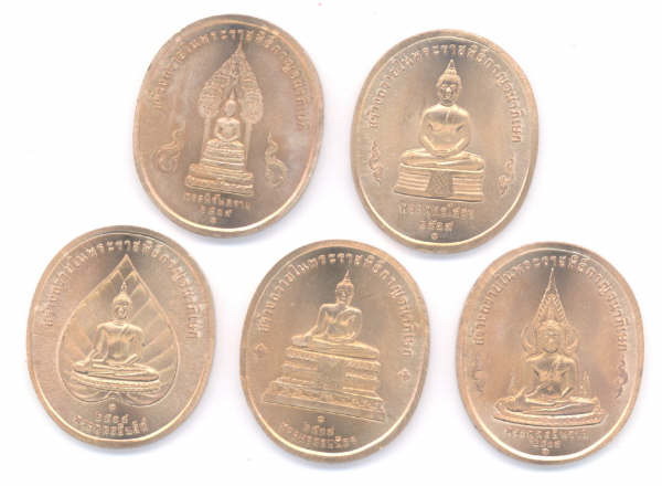 เหรียญชุด "พระพุทธปัญจภาคี" เนื้อทองแดง ๕ เหรียญ ๕ พิมพ์ ฉลองในหลวงครองราชย์ครบ ๕๐ปี พ.ศ.๒๕๓๙ ไม่มีกล่องครับ