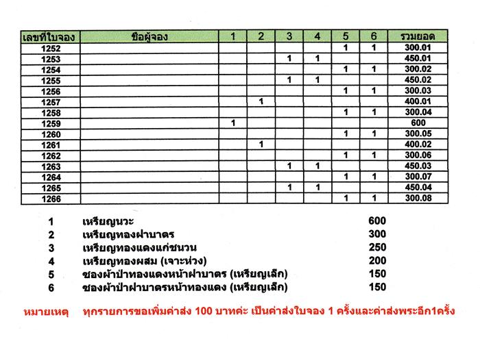 ทุกรายการขอให้ช่วยค่าจัดส่ง 100 บาท(เป็นค่าส่งใบจอง และค่าจัดส่งพระ)