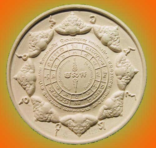 ด้านหลังครบถ้วนด้วยผังดวงดาวนพเคราะห์ธาตุ 4 ดิน น้ำ ลม ไฟ แวดล้อมด้วยหัวใจคาถาอิติปิโสแปดทิศ คุมแต่ละวัน
