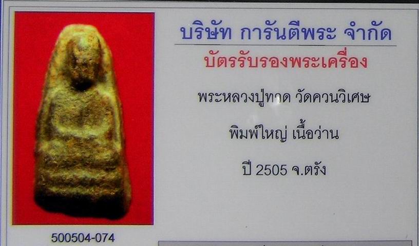 ประมูลเคาะเดียว!!!!!...พิธีปลุกเสกใหญ่อลังการหลักฐานการสร้างแน่นอน!!!ลป.ทวด วัดควนวิเศษ พิมพ์ใหญ่ จ.ตรัง เนื้อแก่ว่าน ปี2506 หลังยันต์ห้า อ.ทิม วัดช้างไห้เสก + ใบรับรองพระแท้จากการันตีพระ