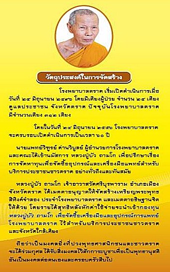 วัตถุประสงค์เพื่อซื้อเครื่องมือแพทย์ใช้ในโรงพยาบาลตราด ชุดนี้เลข 3 หลักสวยๆ เปิดราคาเหรียญละ 1,200 บาท