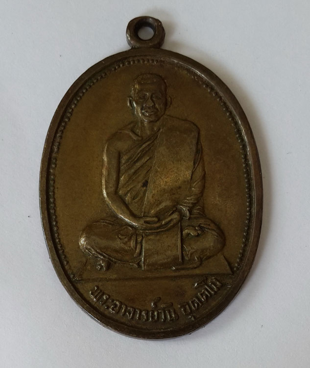 เหรียญรุ่นแรกพระอาจารย์วัน อุตตโม วัดถ้ำอภัยดำรงธรรม สกลนคร ปี 2514 สภาพใช้