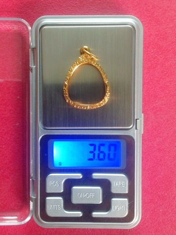 กรอบทองคำ มือสอง นำ้หนักประมาณ 3.60 กรัม สภาพสวย สั่งทำจากร้านทอง สำหรับใส่พระปิดตามหาสเน่ห์ ลป.โต๊ะ หรือขนาดใกล้เคียง ขายราคา 4,000 บาท