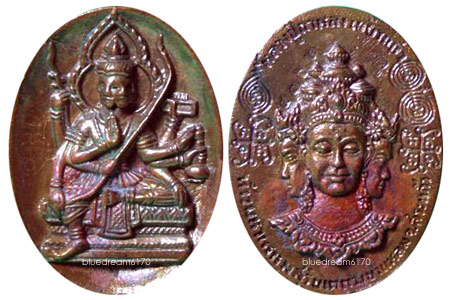 หรียญท้าวมหาพรหมสุริยเทพ เนื้อนวโลหะแก่ทองคำ ลป กาหลง เขี้ยวแก้ว วัดเขาแหลม พร้อมคาถาไว้บูชา