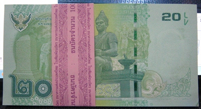 | หัวข้อกระทู้ : ธนบัตร หมุนเวียน 20 บาท ยกแหนบ เลขสวยหลายใบ ๕๔๕๔๒๕๔ |