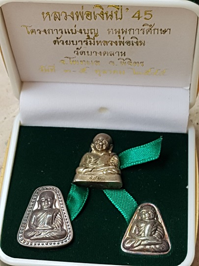 หลวงพ่อเงิน ปี 2545 รุ่นแบ่งบุญ-หนุนการศึกษา เนื้อเงิน ปลุกเสกชนวนมวลสาร 5-6 เดือนครบ 108 วัด 108 คณาจารย์ ทำพิธีก่อนจำหน่ายหลายสถานที่รวมวัดบางคลาน