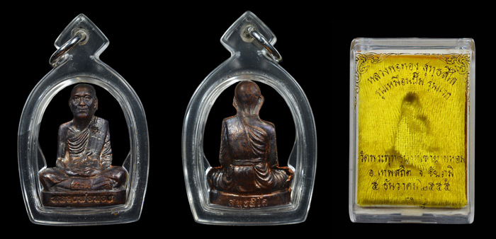 1.ปั๊มรูปเหมือน หลวงพ่อทอง วัดเขายายหอม เนื้อทองแดง เลข 3084 กล่องเดิม