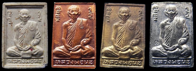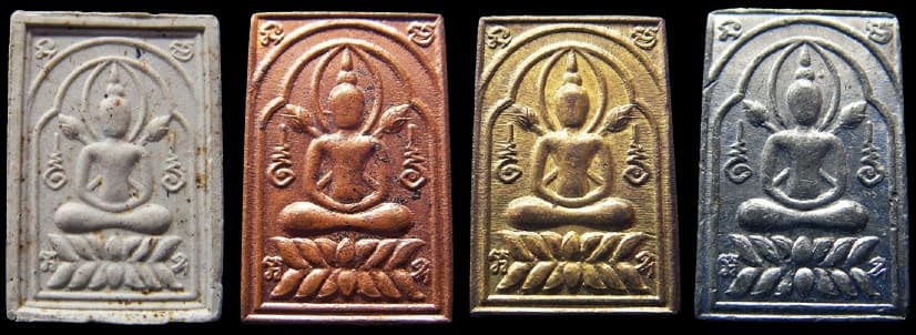 พระบัวไขว้ หลวงปู่นะ รุ่นมหิทธิ77 เนื้อผง ทองแดง ทองเหลือง ตะกั่ว (1 ชุด)