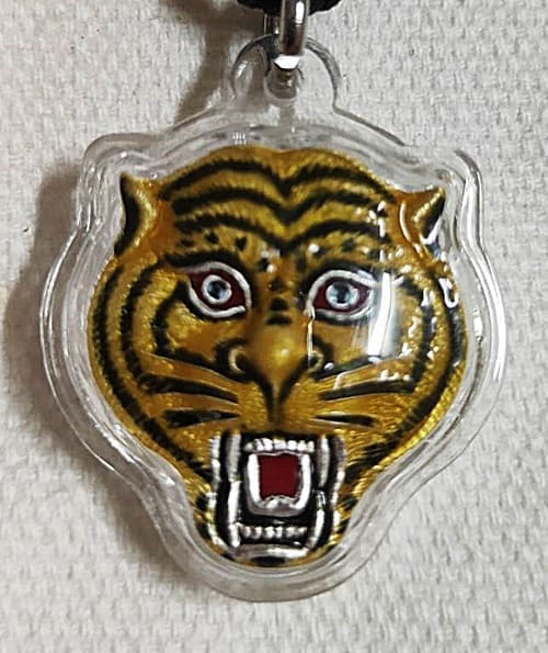 เหรียญหน้าเสือ เนื้อเงินลงยา ศาลเจ้าพ่อเสือ เสาชิงช้า กทม.