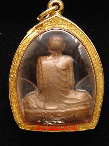 รูปเหมือนปั๊ม พิมพ์ เข่ากว้าง-หลังเต็ม ล.พ.พรหม วัดช่องแค ปี 2516 เนื้อทองแดง สร้างจำนวน 5,000 องค์ ตอกโค๊ด อุ เลี่ยมทอง